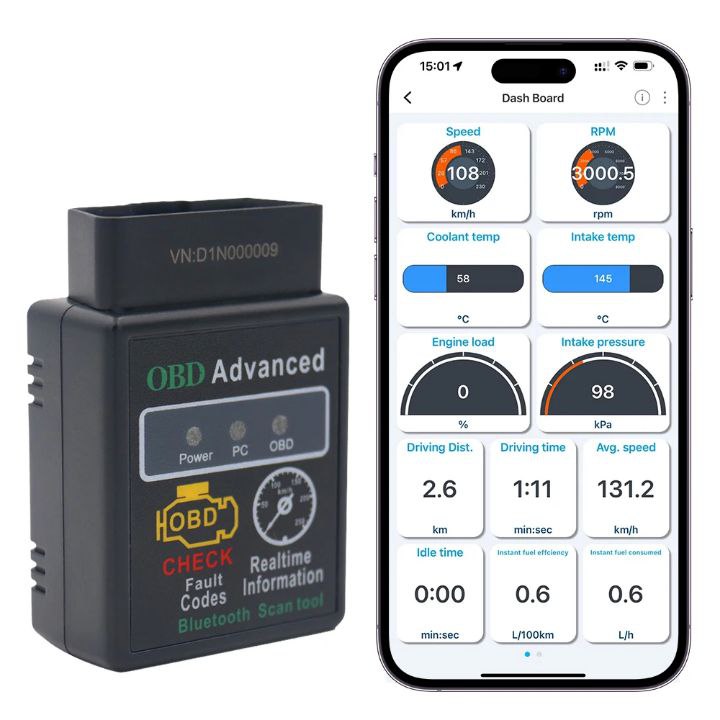 📊 Suivi en temps réel : vitesse, consommation, température moteur, régime moteur…