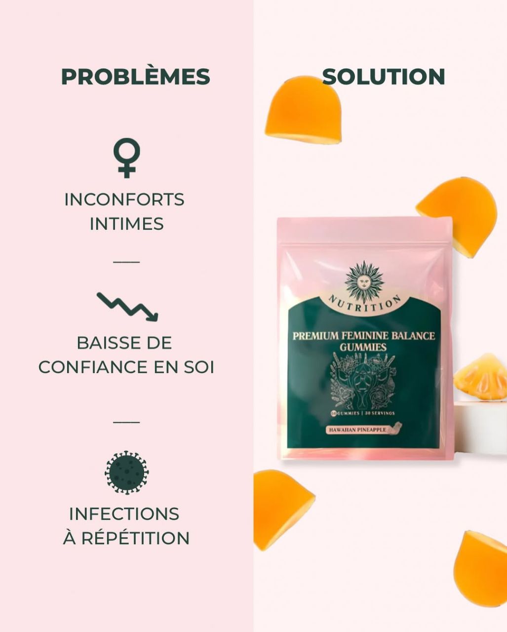 e qui aide les femmes à se sentir bien dans leur corps, chaque jour : les Premium Feminine Balance Gummies.